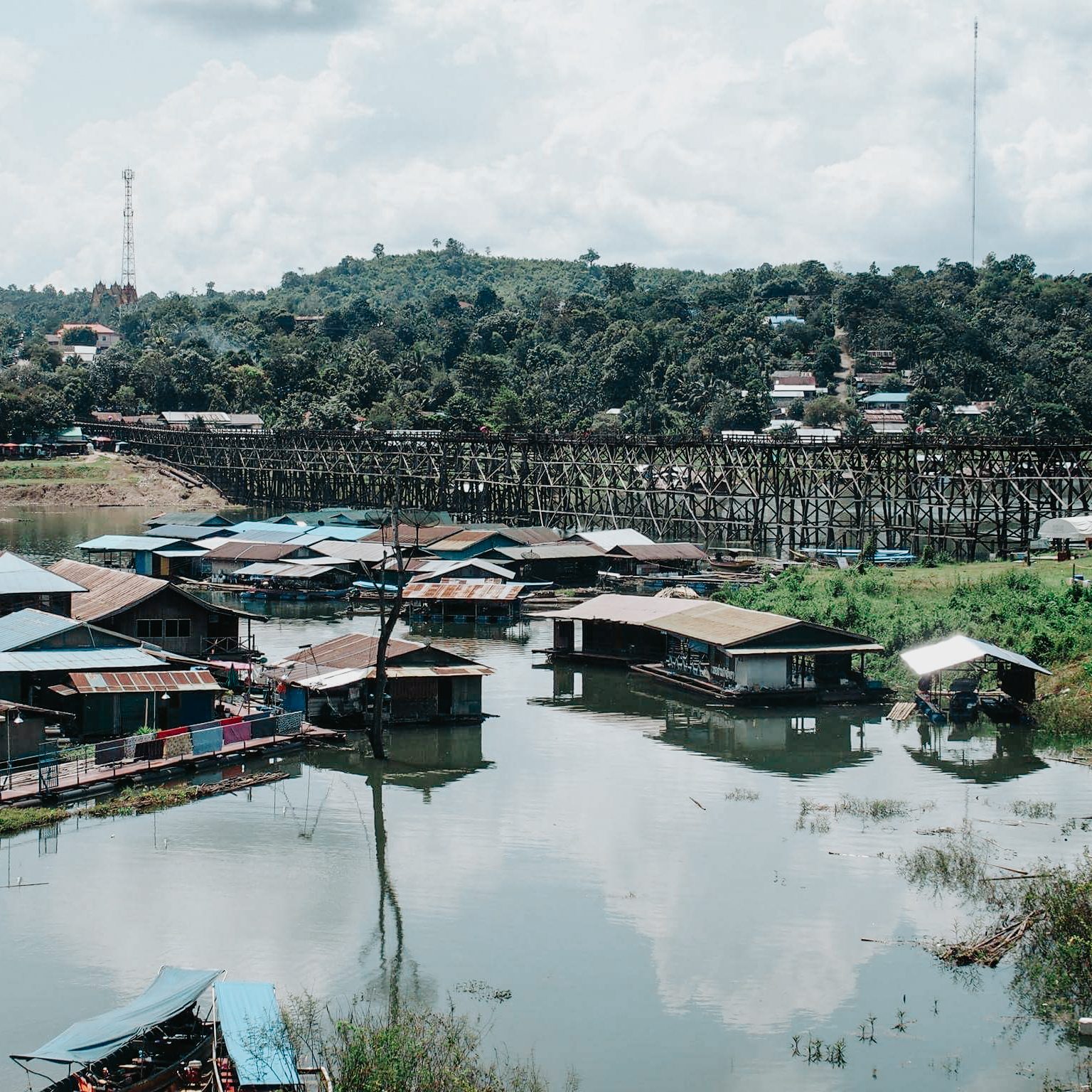 Sanghklaburi était la deuxième ville où nous avons vécu et elle était bien différente de la première. C’est une petite ville dont l’attraction principale est le pont en bois piéton de 400m construit par des Mon qui sépare la ville en deux parties, une partie thaïlandaise et une partie Mon (groupe ethnique de Birmanie).