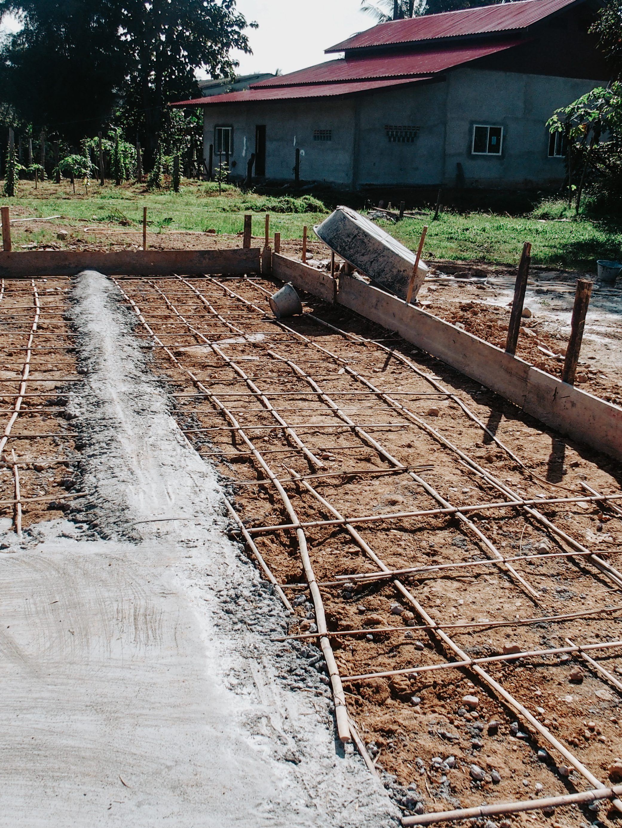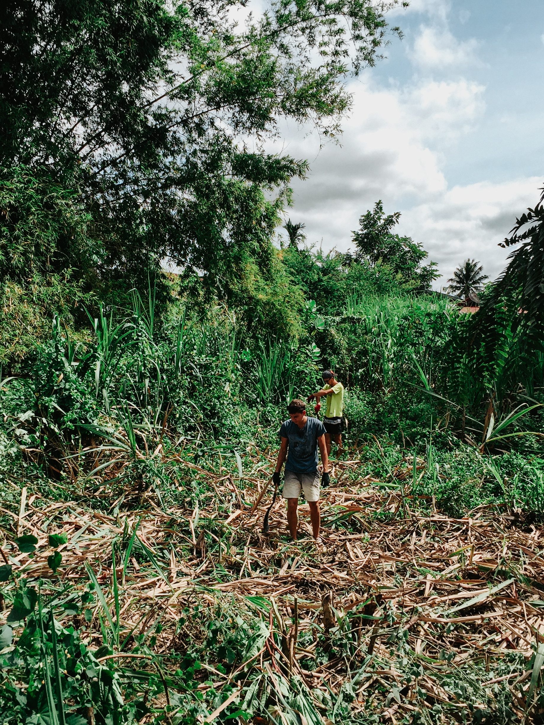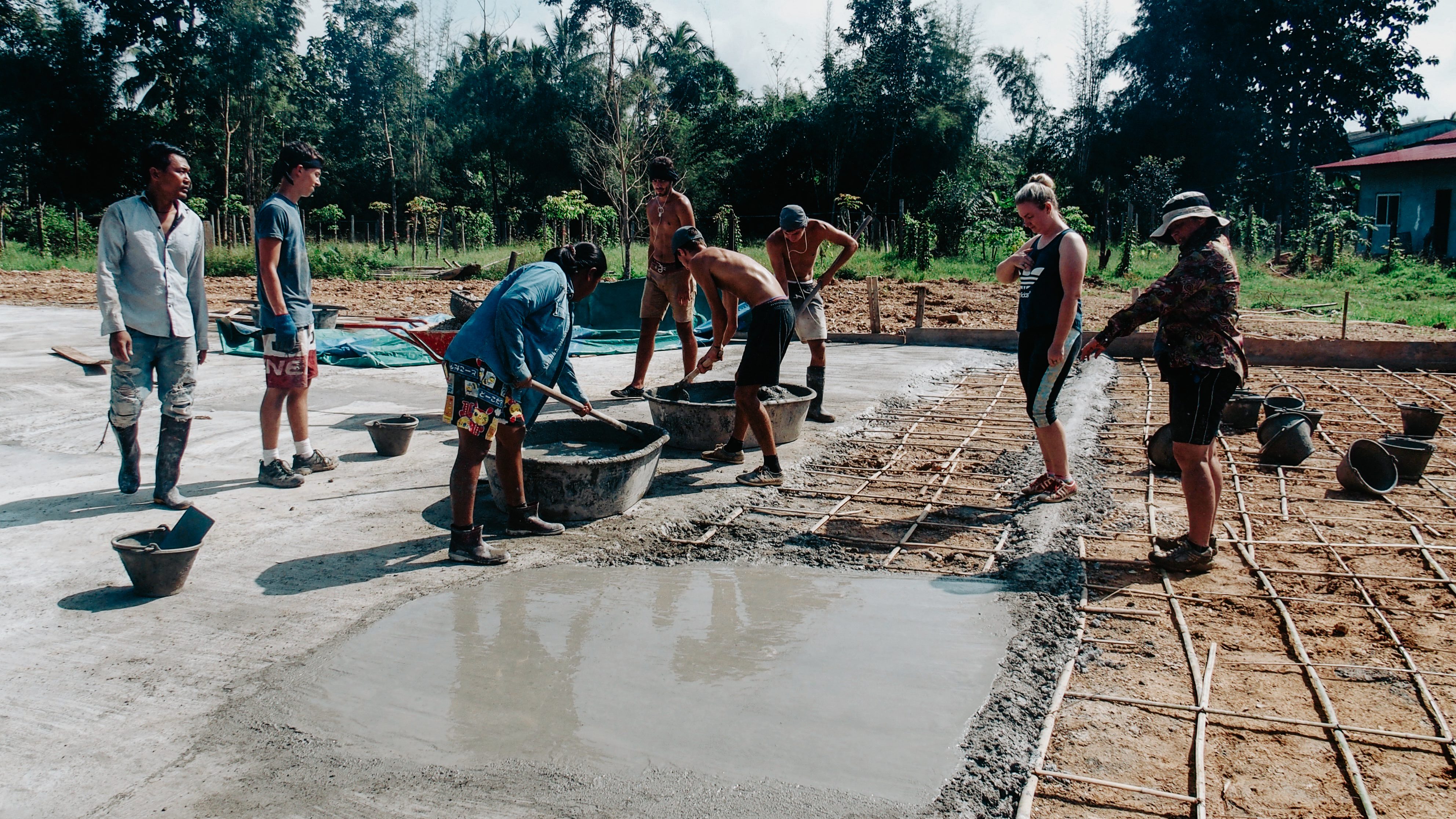Dans cette ville, la mission confiée aux volontaires dépend des besoins de la communauté. Lorsque nous sommes arrivés à Sangkhlaburi, en octobre, elle avait besoin d’aide pour construire un crématorium à côté d’un temple local. Donc, pendant un mois, nous avons dû fabriquer du ciment à la main, niveler le sol, couper du bambou dans la jungle pour l’utiliser sur le chantier, en résumé : c’était un travail vraiment physique et dur. Nous travaillions tous les matins de 9h à 12h, puis nous le déjeuner était compris chez l’habitant pendant une heure. A 13h nous retournions sur le site de construction où la journée se terminait à 15h. J’étais toujours avec le même groupe de français (5 amis de mon école de commerce) et sur cette mission, nous étions supervisés par deux membres du personnel et parfois d’autres groupes de volontaires s’ajoutaient à nous pour la semaine.