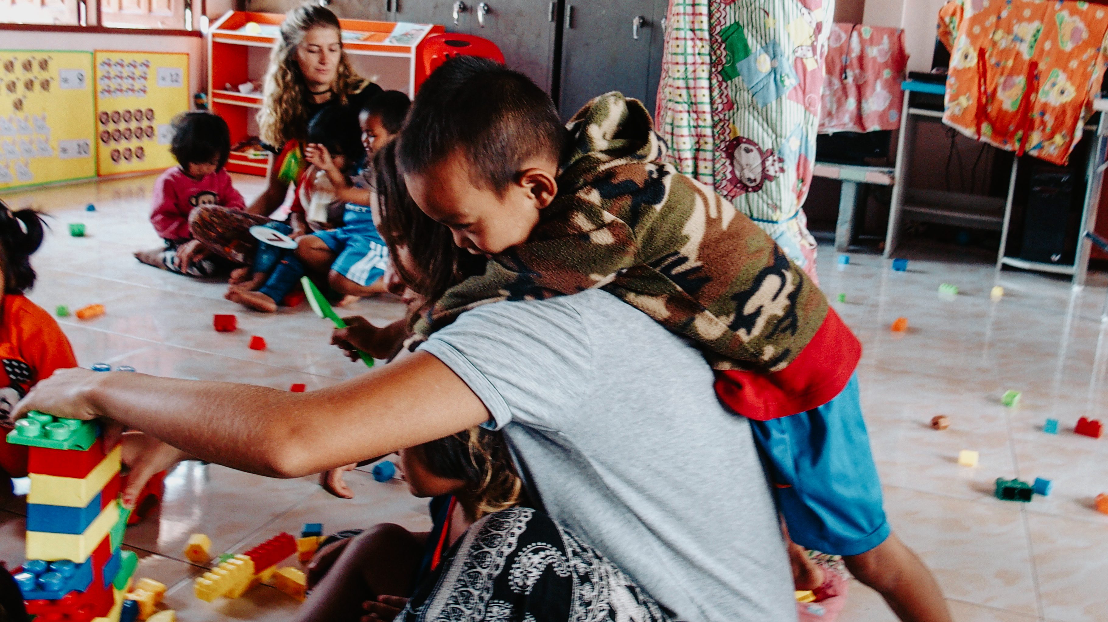 Au cours du dernier mois, notre mission était d’aider le personnel thaïlandais à plein temps dans la garde et l’organisation d’activités d’enfants de de 3 à 6 ans. Habituellement, chaque volontaire prenait un petit groupe d’enfants l’aidait avec la réalisation de l’activité. Nous leur apprenions également quelques bases d’anglais avec des chansons ou des jeux pour apprendre les chiffres ou l’alphabet. Nous aidions aussi le personnel à s’occuper des aires de jeux et du jardin lorsque les enfants faisaient la sieste après le déjeuner., on pouvait alors s’occuper de tailler les haies ou balayer le sol. Cette mission a été ma préférée de ma mission humanitaire, car l’amour que les enfants nous apportaient sans rien demander en retour et sans vraiment communiquer avec nous était inestimable.