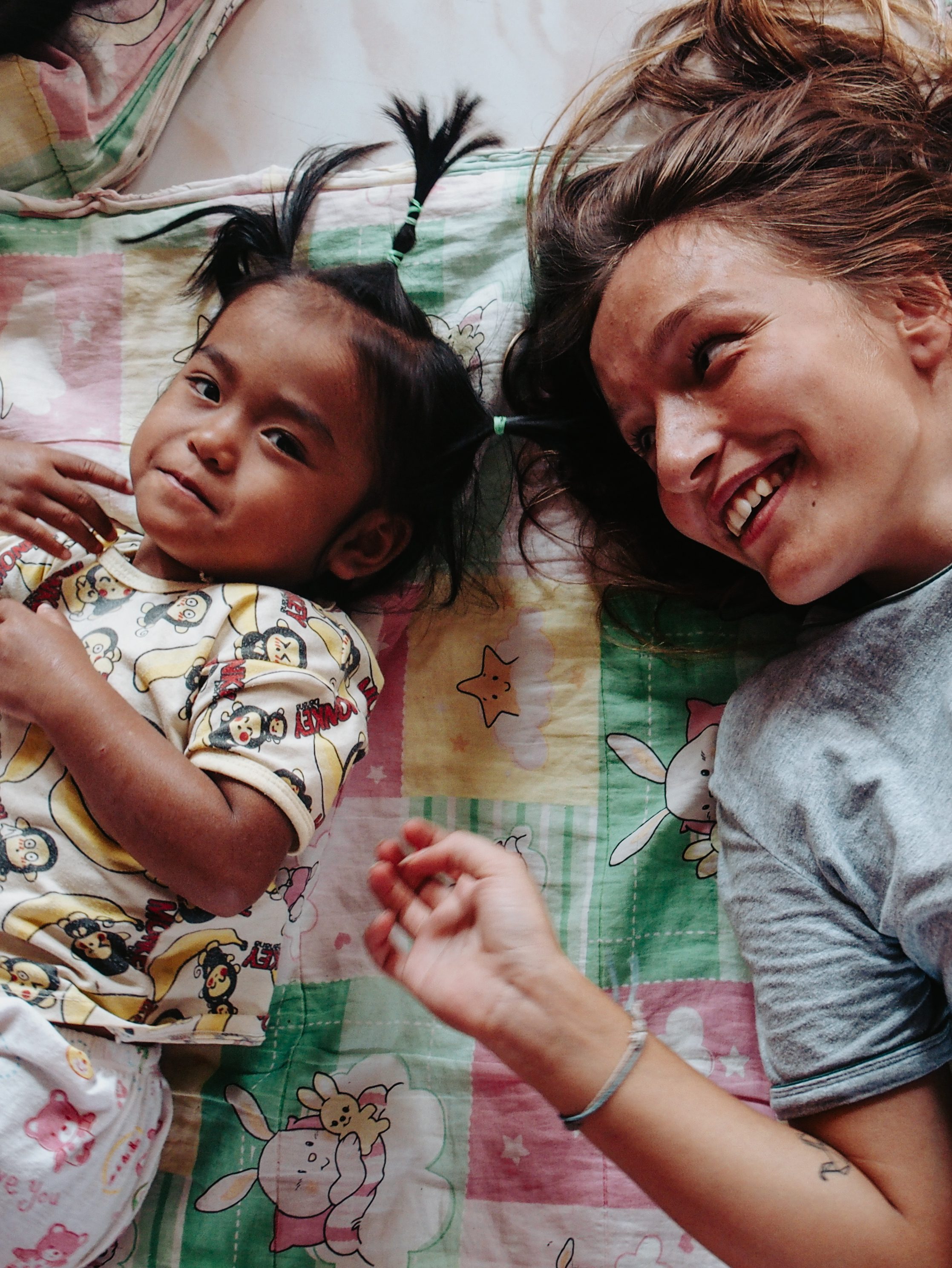 J’ai été touché par ces enfants qui n’avaient rien, la plupart d’entre eux venaient de familles très pauvres et pourtant ils étaient simplement heureux et donnaient un amour inconditionnels. Les quitter a été très dur surtout ces deux petites filles de 3 ans, très timides, qui ne parlaient et ne jouaient avec personne mais qui m’ont étrangement acceptés moi. (voir photo)