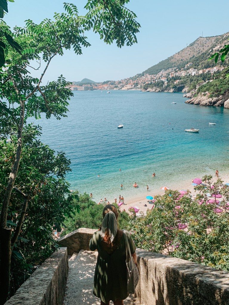 Superbe surprise en arrivant à cette plage qui fait partie d’un de mes coup de coeur de la ville. En effet, la plage de Stevi Jakov est plus éloignée de Dubrovnik que les autres, la rendant moins peuplée que d’autres. Elle est accessible en voiture ou comme nous l’avons fait, à pied pour une balade d’environ 35 minutes depuis la vieille ville. Cette balade n’est pas déplaisante et vous offre de magnifiques panorama sur la côte et les remparts de Dubrovnik au loin.