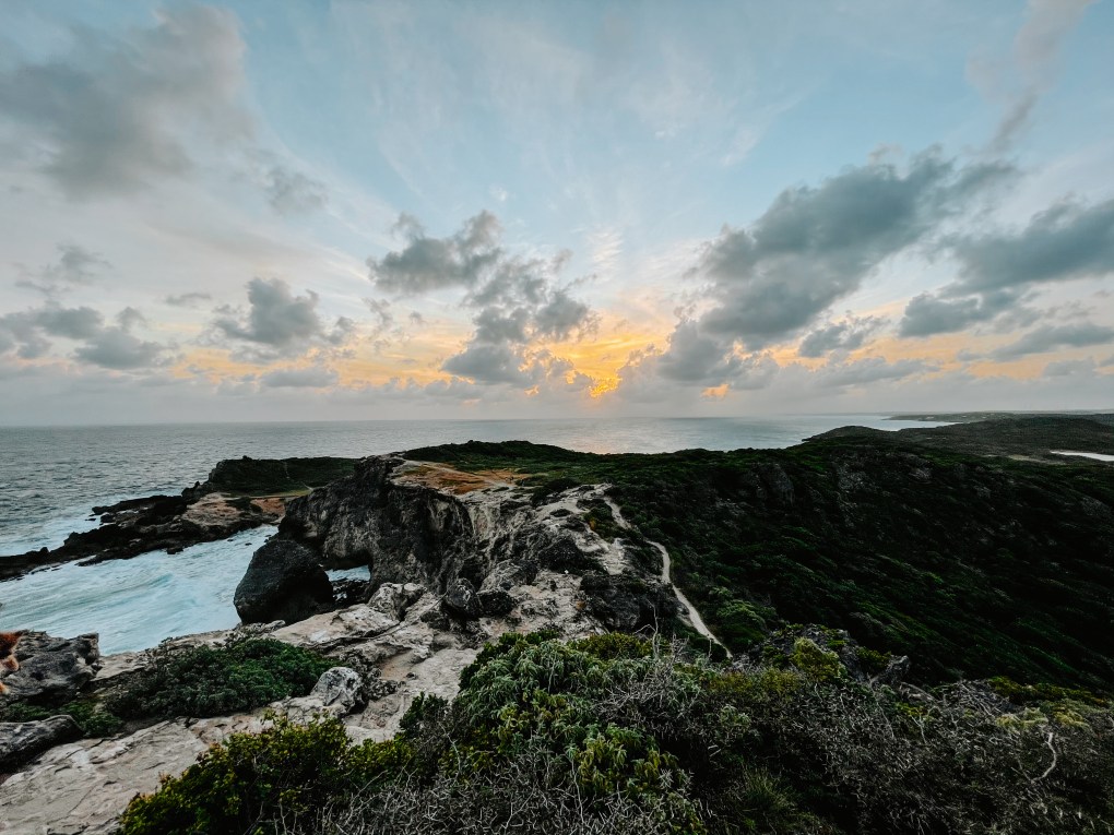 Un des meilleurs spots de Guadeloupe pour assister a un coucher du soleil est incontestablement la pointe aux châteaux. Accessible en voiture, vous pourrez vous garer sur un parking au bord de la route et vous aventurer dans une randonnée d’une trentaine de minutes pour arriver au bout de la pointe aux châteaux et sa grand croix. De nombreux sentiers de randonnées sont possible à cet endroit pour ceux souhaitant se balader et profiter des jolies vues sur la mer et les falaises.