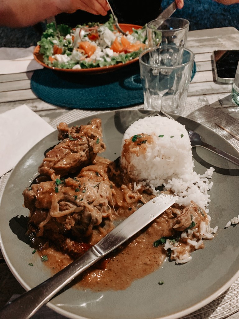 Après avoir testé une dizaine de restaurants conseillés sur les réseaux, par les guides ou trouvés par hasard, rien n’y fait personne n’a égalé notre restaurant coup de coeur en Guadeloupe testé le premier soir : Le restaurant Arts é Galets. Au bord de la plage Simaho, dans le petit village de Vieux-Habitants, ce petit restaurant d’une dizaine de tables et un vrai délice culinaire. Vous y trouverez des plats locaux et des plats internationaux personnalisés à l’antillaise. Je n’ai pas trouvé mieux en qualité prix : les plats sont copieux et très abordables et l’accueil irréprochable !