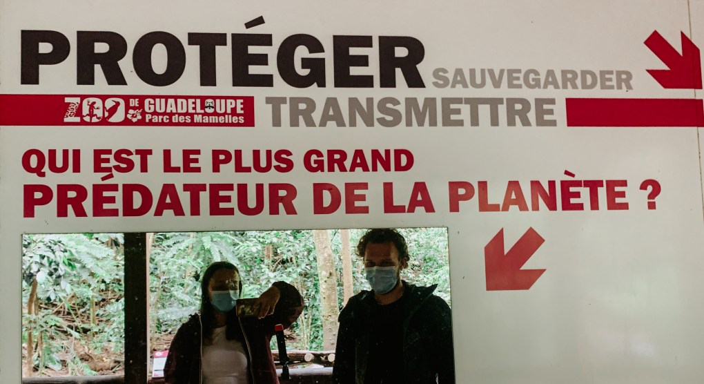 Il a fallu d’un jour de pluie pour que nous nous décidons de découvrir le Zoo de Guadeloupe, sur la route de la traversée. Au cœur du massif de la Basse-Terre, ce zoo appelé aussi parc des Mamelles consacre 4 hectares de forêt tropicale à la conservation d’espèces animales rares ou menacées. On y retrouve des dizaines d’espèces d’animaux tels que des singes, un jaguar, des perroquets etc. et énormément de végétations. En effet, on peut se balader sur de nombreux ponts suspendus à 20 mètres de haut offrant un décor tropical incroyable sur la cime des arbres.