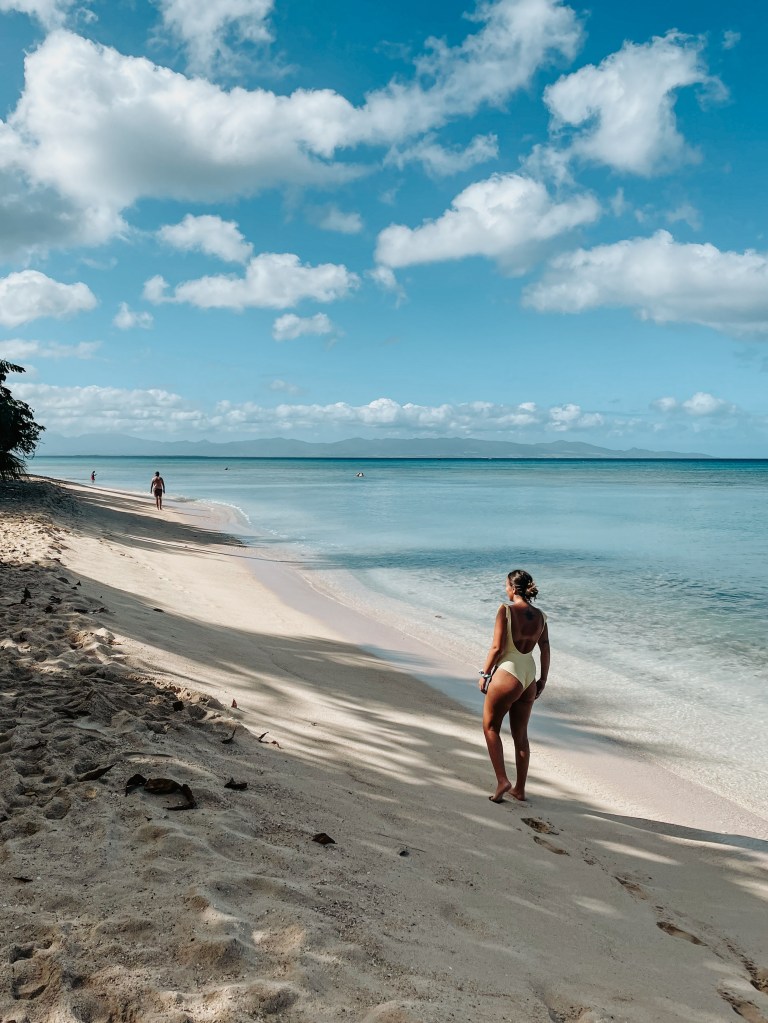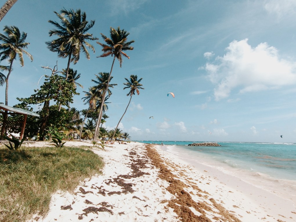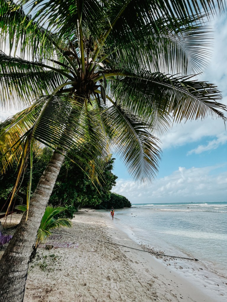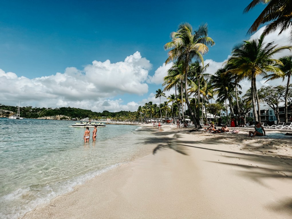 Avec peu d’espoir, nous avons continué notre aventure de la journée par la plage de la caravelle. A notre arrivée, nous nous sommes garés dans un parking gardé par des locaux en échange de deux euros. On prends nos affaires de plages et on longe les vendeurs de coco sur leurs petits stands avant d’arriver au bord de la mer. Il faut continuer de marcher quelques minutes sur la droite avant d’arriver à la plage de la caravelle et ses nombreux palmiers. À mon grand étonnement, la plage n’était pas noir de monde et on a facilement trouvé un endroit où poser les serviettes avant de passer le reste de la matinée dans l’eau chaude et turquoise de Guadeloupe.