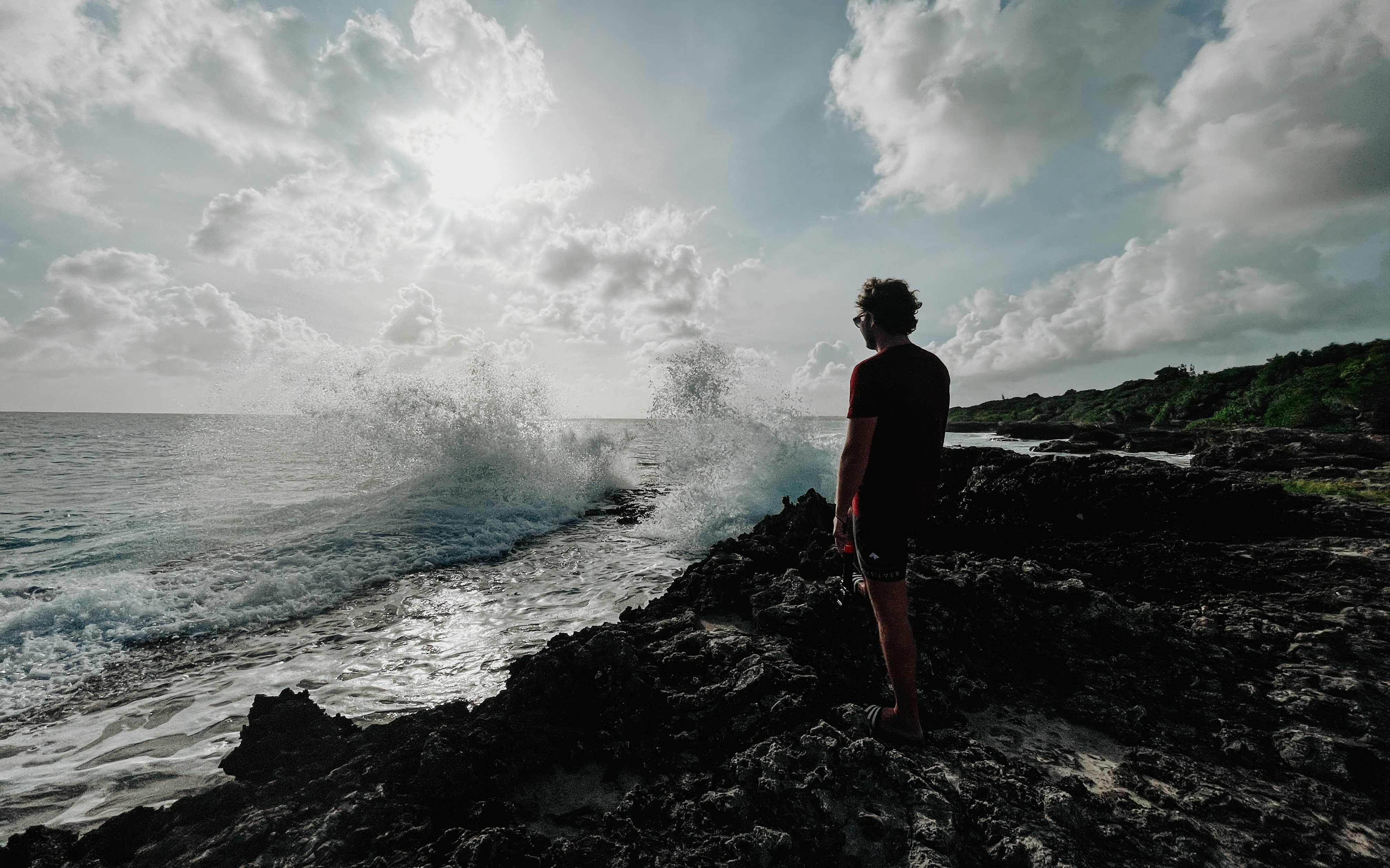 Une fois notre tour en ULM terminé, nous avions encore le temps de découvrir la pointe des châteaux mais cette fois-ci à pied. Ni une, ni deux, on prends la voiture et on part direction le parking de la pointe des châteaux. Une fois garés, on marche très rapidement de peur de louper le coucher de soleil qui se couche assez tôt en janvier en Guadeloupe. Après une vingtaine de minutes de marche, on arrive essoufflés au niveau de la grande croix annonçant le point de vue mais les nuages cachent le coucher du soleil tant attendu. Finalement les quelques éclaircies apparaissent à travers les nuages rendant la vue encore plus agréable et on profite de la vue quelques instants avant de repartir dans notre logement.