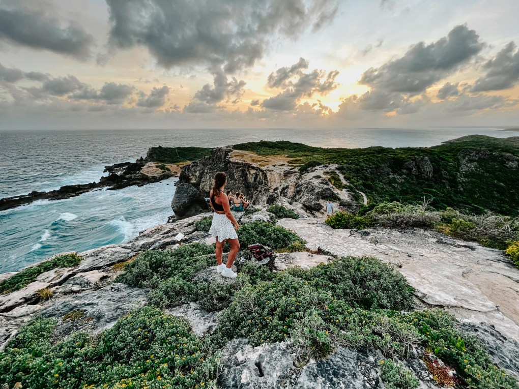Nous arrivons à 15h au parking de la Grande Vigie, on est surpris par le vent qui souffle fort. Nous partons faire la balade d’une vingtaine de minutes offrant des vues sur les falaises de Grande-Terre offrant un superbe paysage qui change du reste de cette partie de l’île. Je vous conseille de prendre des basket car le sol est composé d’un espèce de coraux qui rends pas marche pas très agréable en sandales.